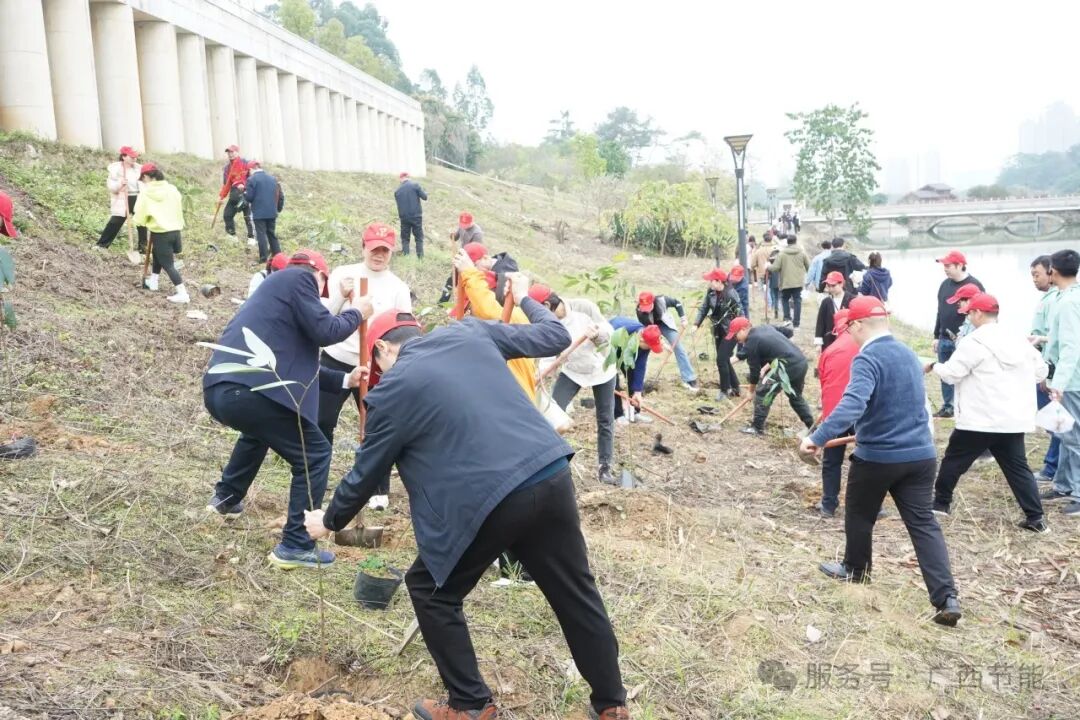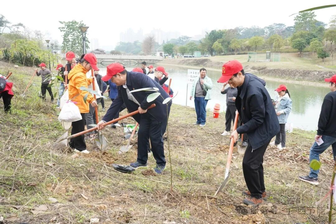 春风送暖绿意浓,节能添绿正当时。为深入学习贯彻习近平态文明思想,践行“绿水青山就是金山银山”的发展理念,在第47个植树节到来之际,3月11日,桂物节能公司携手广西壮族自治区药用植物园开展“共植绿色未来 节能与你同行”主题党日活动暨新时代文明实践活动,以种植药用植物肉桂为契机,将节能理念与生态保护深度融合,为壮美广西再添一抹“绿动能”。桂物节能公司党总支书记、董事长廖雨林,总经理林少佳及公司在家领导班子参加活动。
