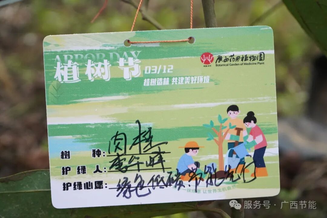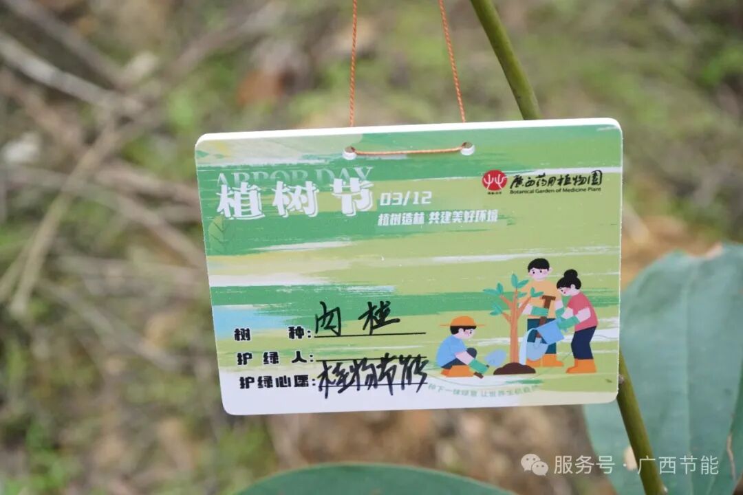 种植完成后,大家纷纷给种植的肉桂树挂上特制“节能认养名牌”,上面清晰镌刻着种植者的姓名、栽种日期以及树种信息让人一目了然。通过这些标识牌,人们还能轻松访问到树木的成长数据及其对碳汇的积极贡献值,实现了对自然生态的精细化管理与追踪。